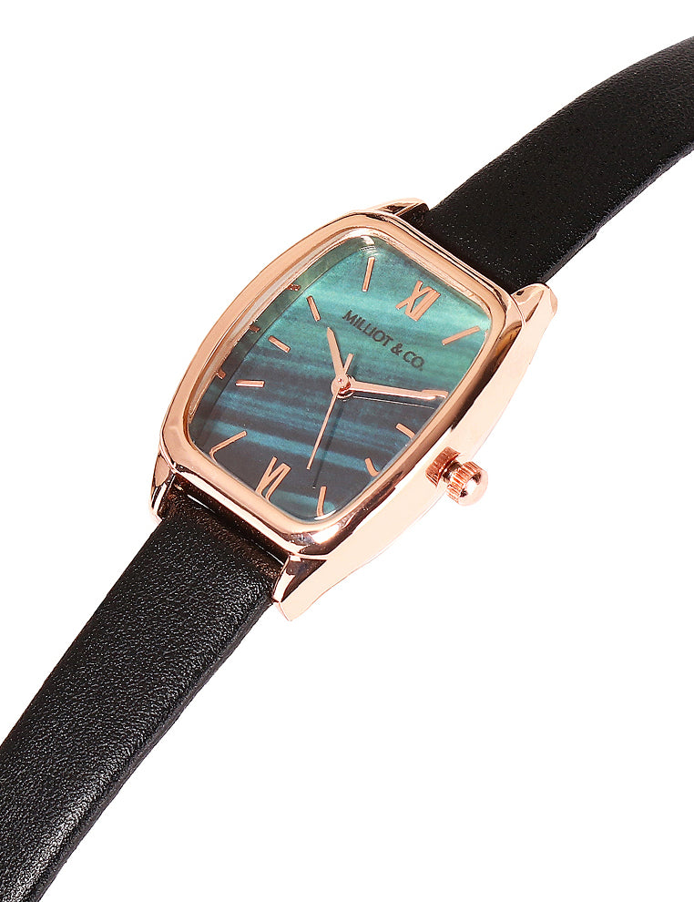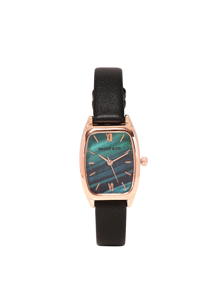 Ainsley Rose Gold Leather Strap Watch (Black)