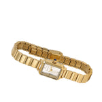 Introducing our chic petite square watch with a refined 22.9mm case. This petite watch is perfect for the smaller wrist or any woman who's in search of a subtle yet eye-catching timepiece.