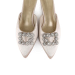 - Embellished buckle detail satin heels