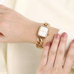 Begin your journey into a world of elegance with the Kayla watch, a masterpiece featuring a new selection of jewelry and watch combinations. Its minimalist design and premium materials ensure both durability and style. The sophisticated chain strap enhances its distinctive look, ensuring a comfortable and secure fit.