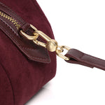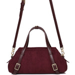 Crafted in soft-touch suede with adjustable handles for versatile carry.