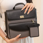 - Turn-lock closure with zippered main compartment