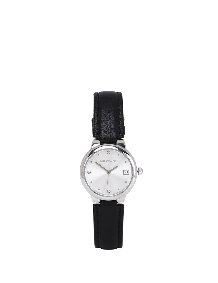 Freja Silver Leather Analog Watches (Black)
