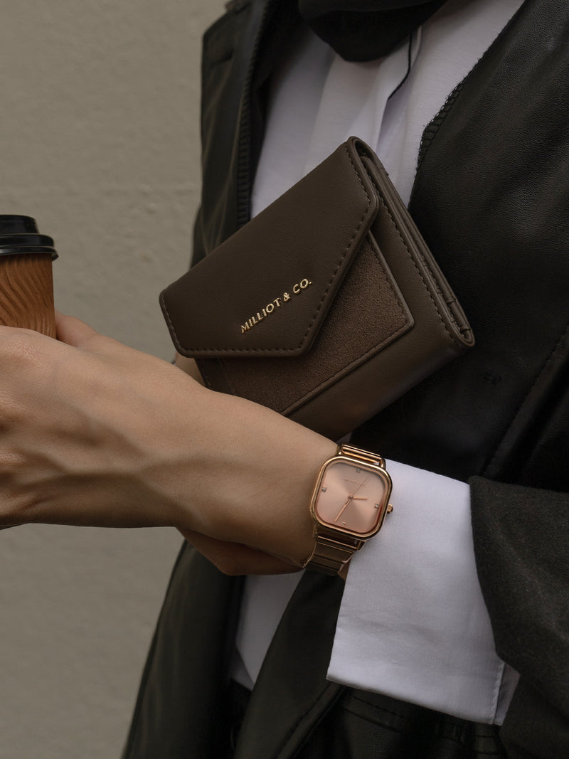 Adelie Rose Gold Leather Analog Watches (Nude)