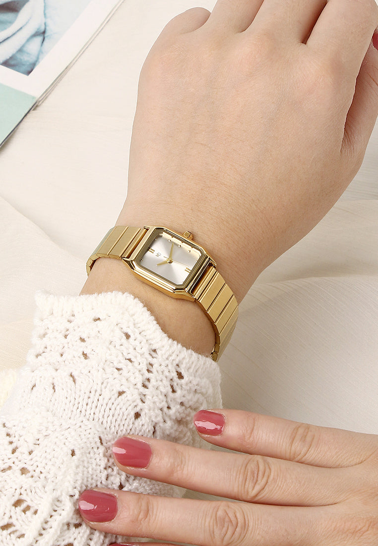 Introducing our chic petite square watch with a refined 25mm case. This petite watch is perfect for the smaller wrist or any woman who's in search of a subtle yet eye-catching timepiece.
