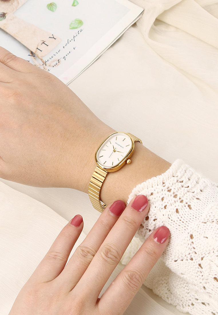 Our new delicate oval face, elegantly designed with a sleek 23mm case. This refined timepiece embodies timeless elegance with its graceful oval shape, offering a sophisticated twist on classic watch design.The minimalist dial enhances its understated charm, making it a versatile accessory for any occasion.