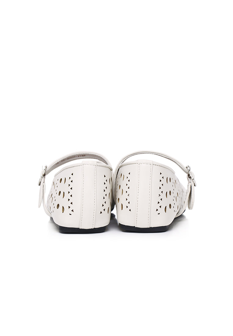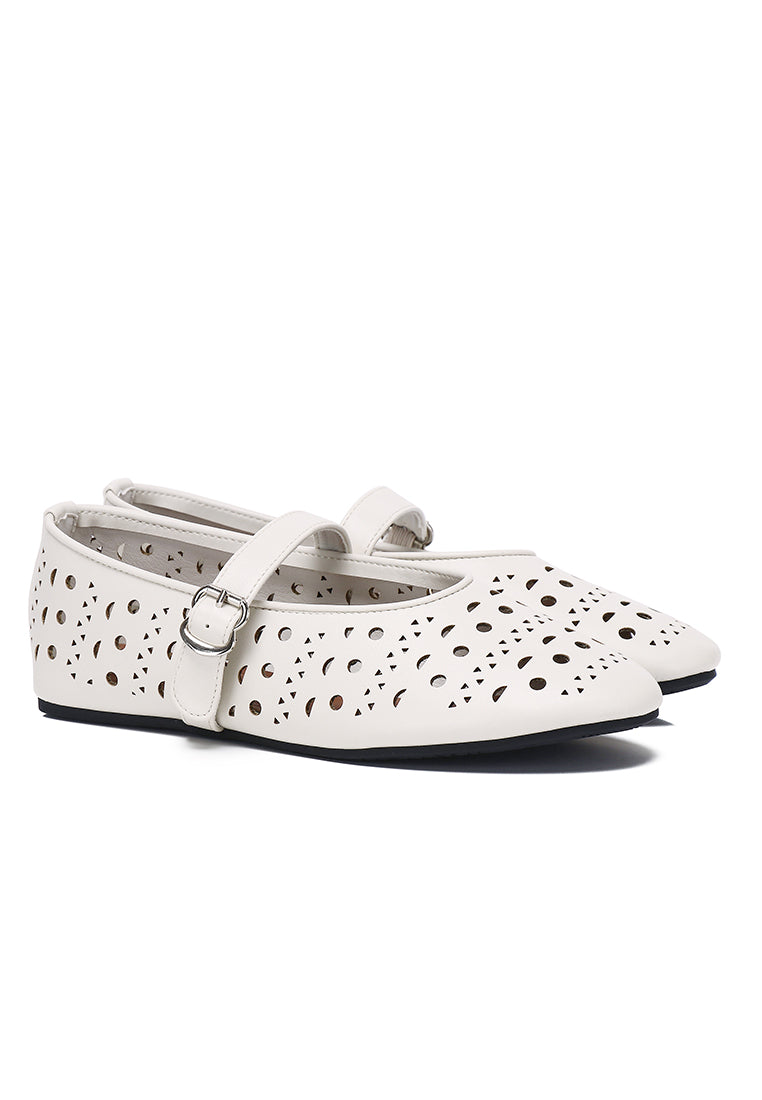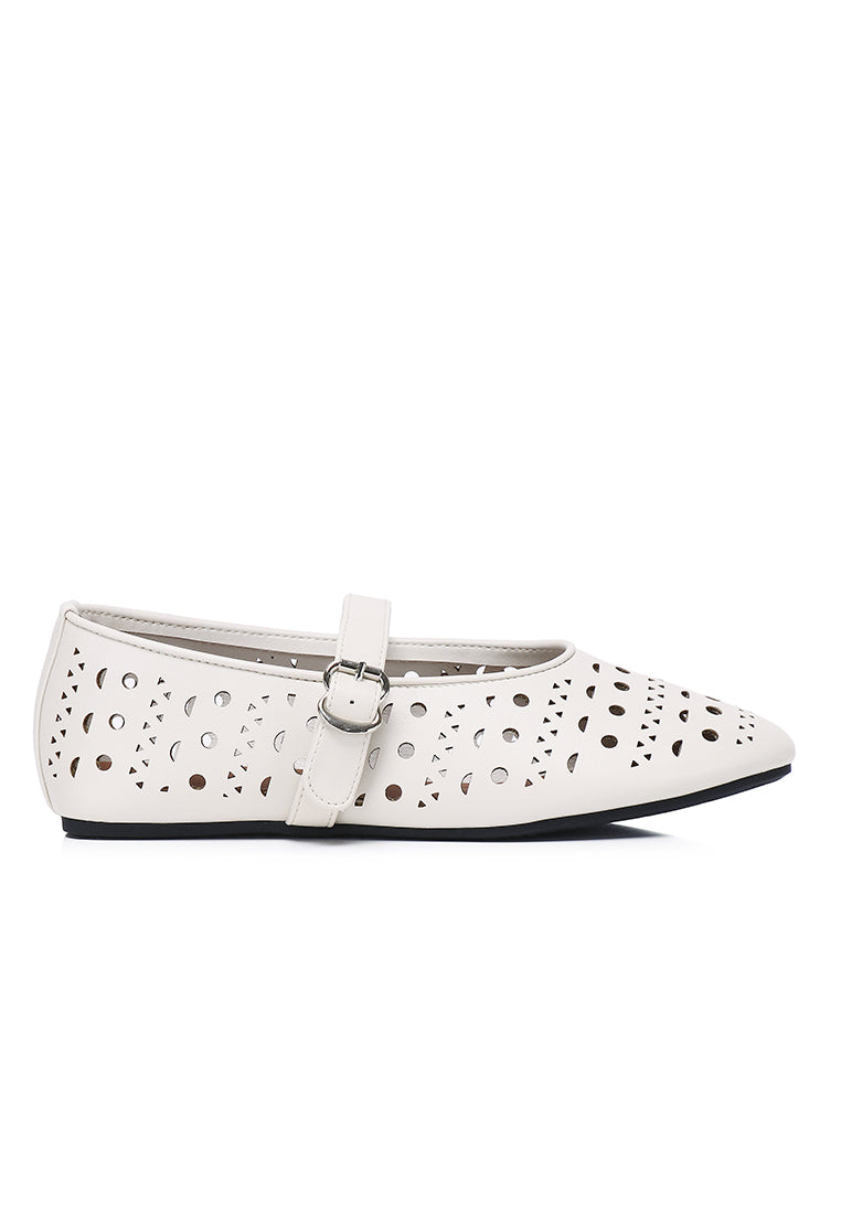 - Solid tone faux leather ballerinas with buckle detail