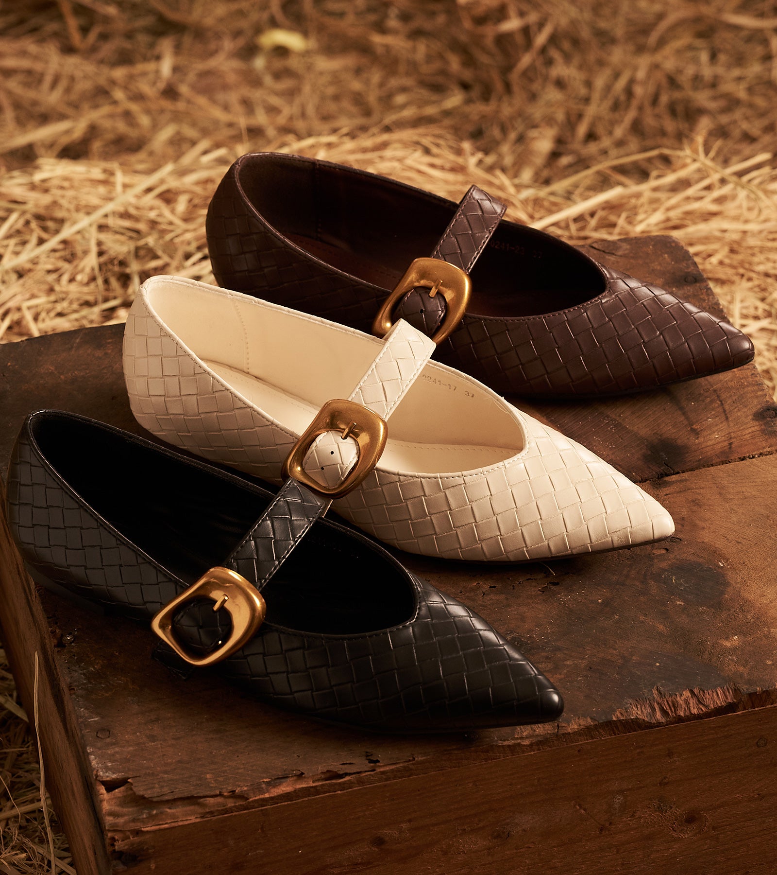 Shanzey Chucky Buckle Ballerina & Flats (Black)
