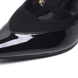 - Pointed toe with slingback strap design