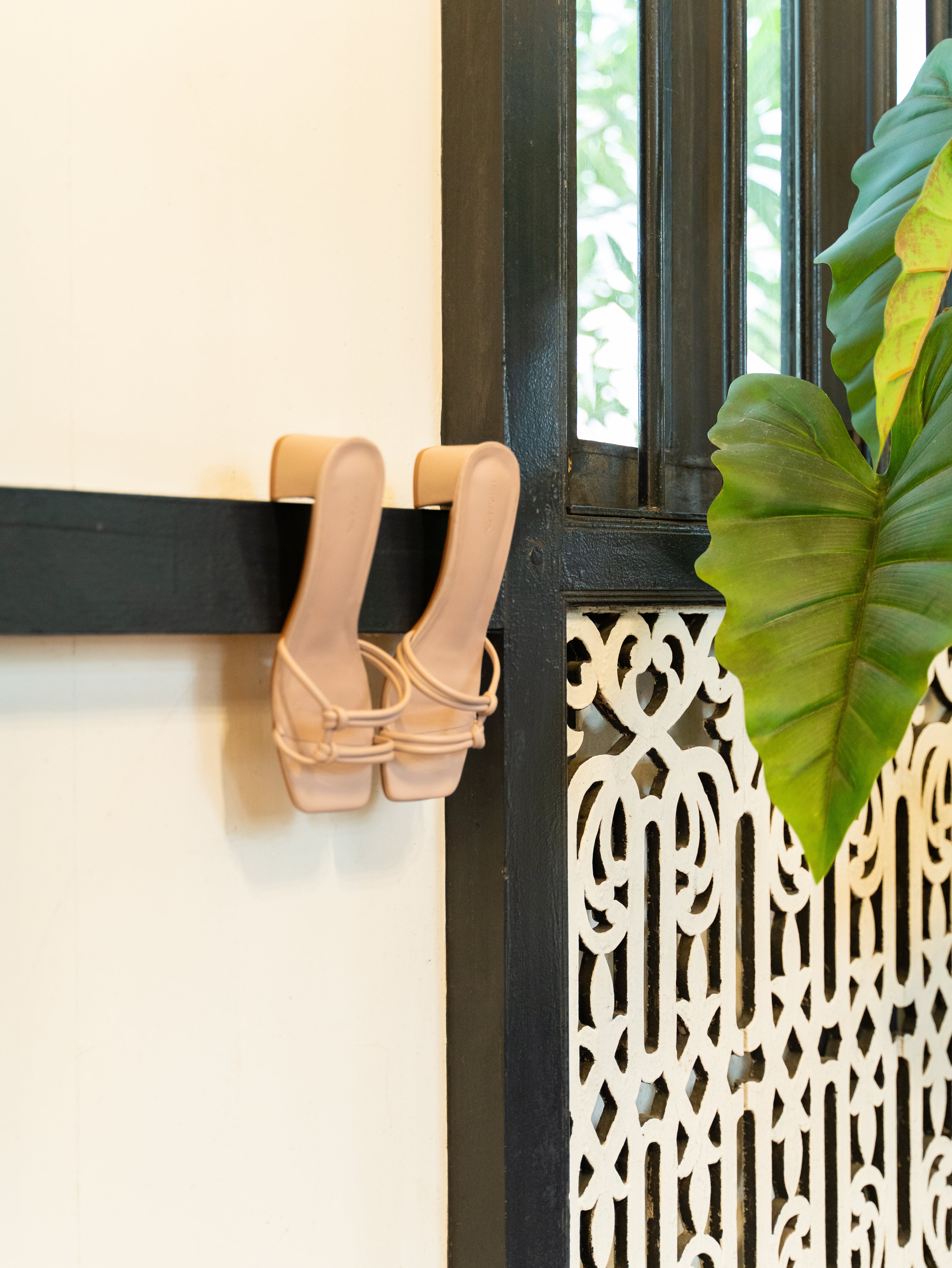 - Knotted strap details