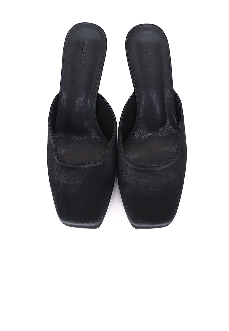 - Square toe satin heels