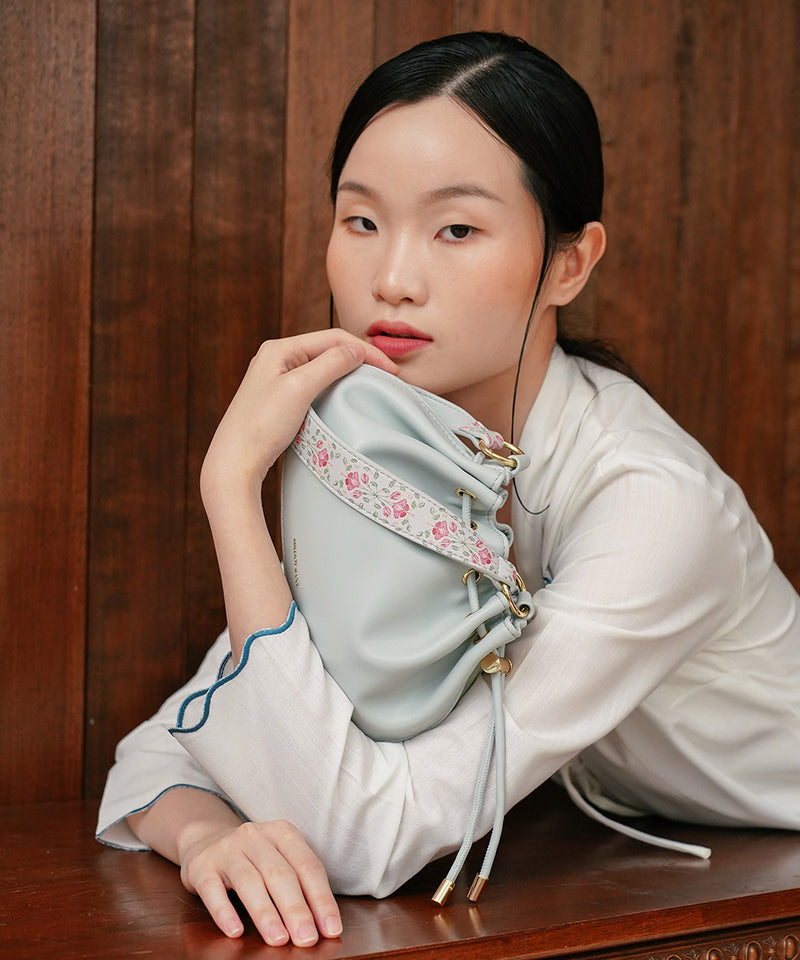 Harriet Petite Drawstring Bucket Bag (Light Blue)