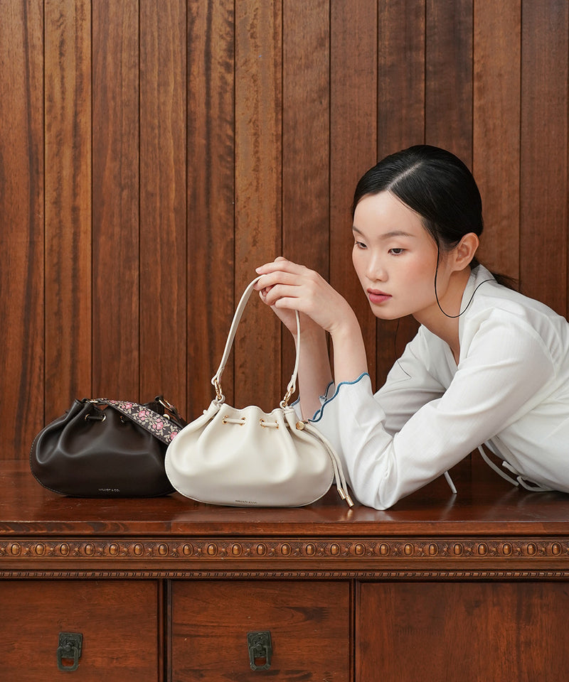 Harriet Petite Drawstring Bucket Bag (Beige)