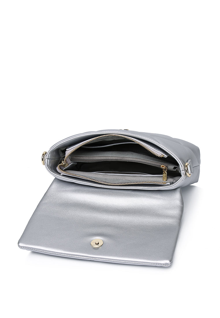 Moon Like U Quilted Flap Crossbody (Silver)