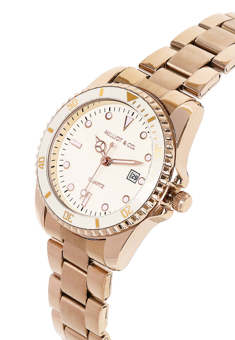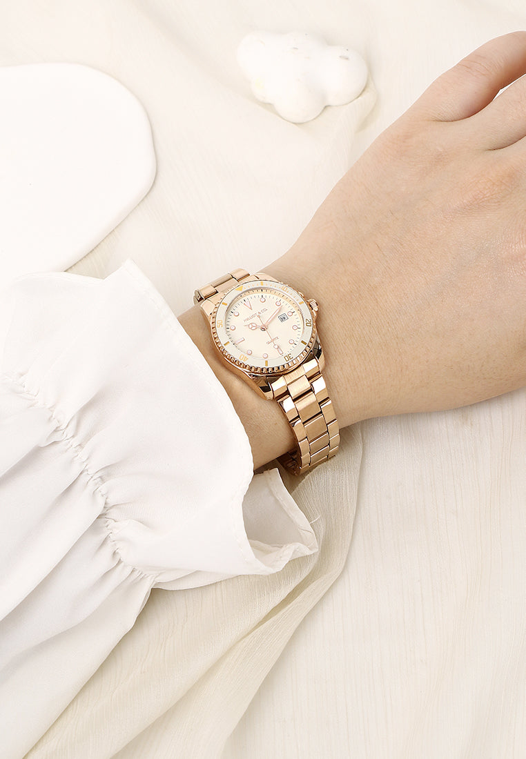 Victoria Rose Gold Stainless Steel Strap Watch V2 (Beige)