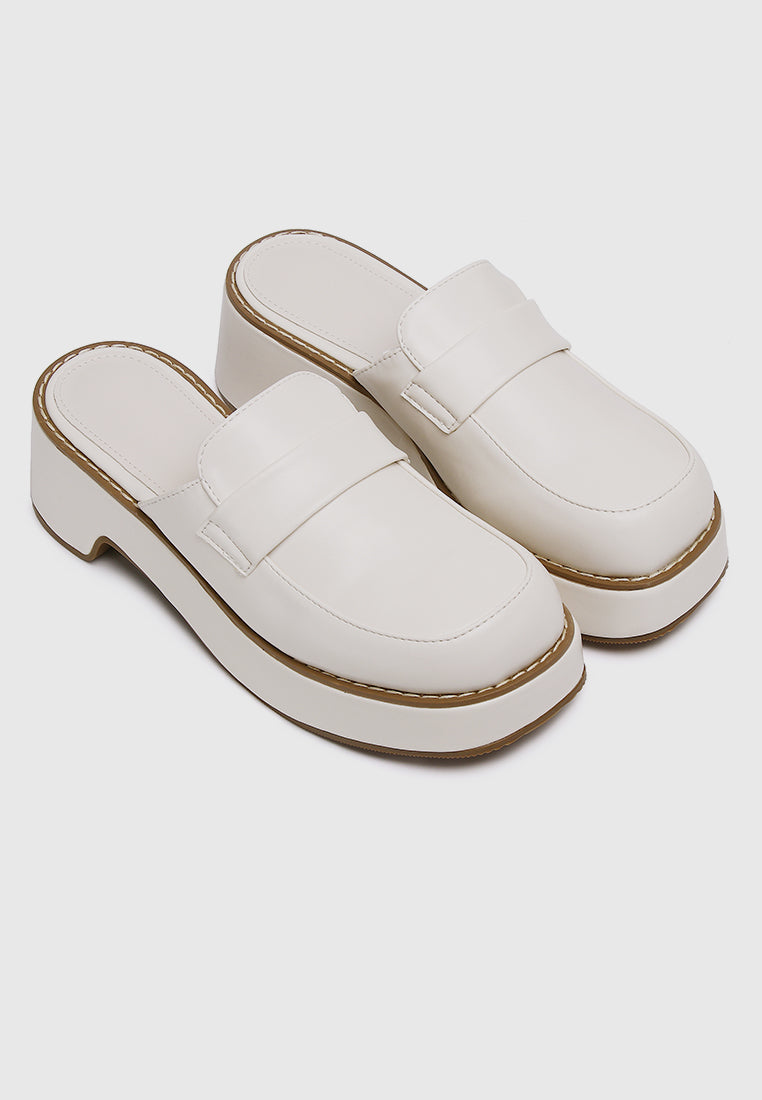 - Faux leather horsebit mules