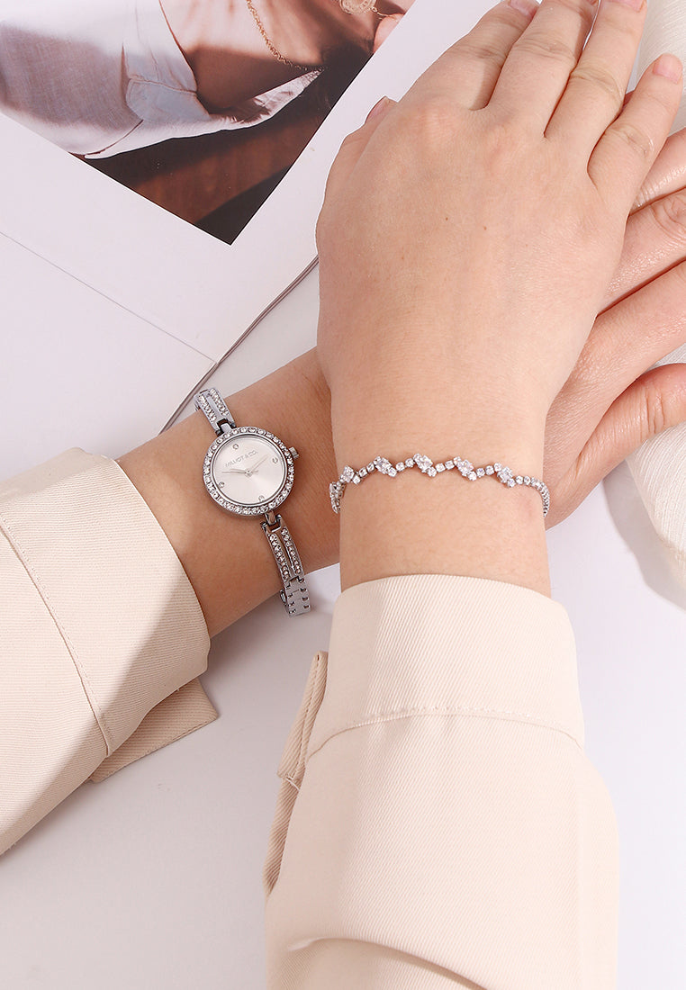 Sora Rhinestone Analog Watch with Bracelet Set (Silver)