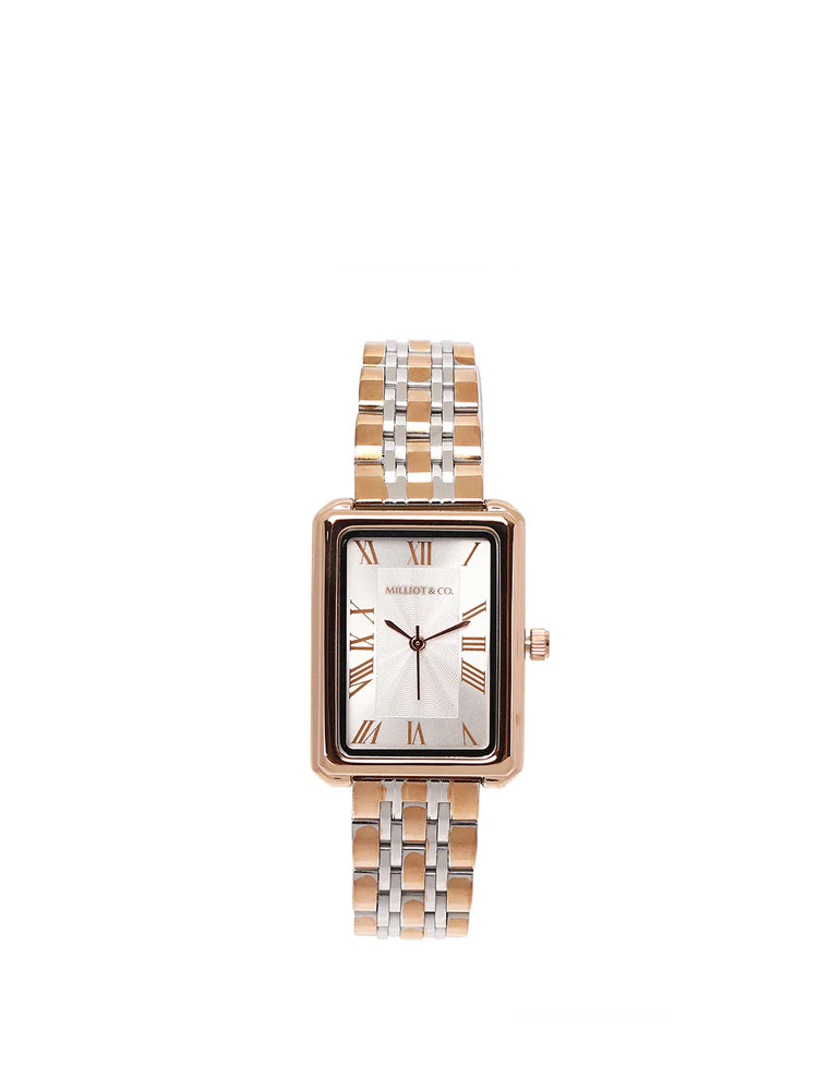 Ollie Stainless Steel Strap Analog Watch (Silver/Rose Gold)