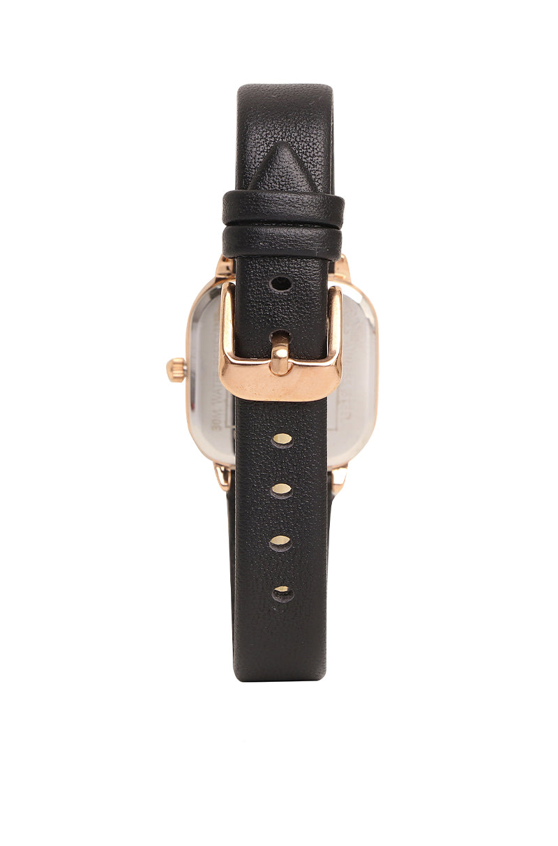 Ainsley Rose Gold Leather Strap Watch (Black)