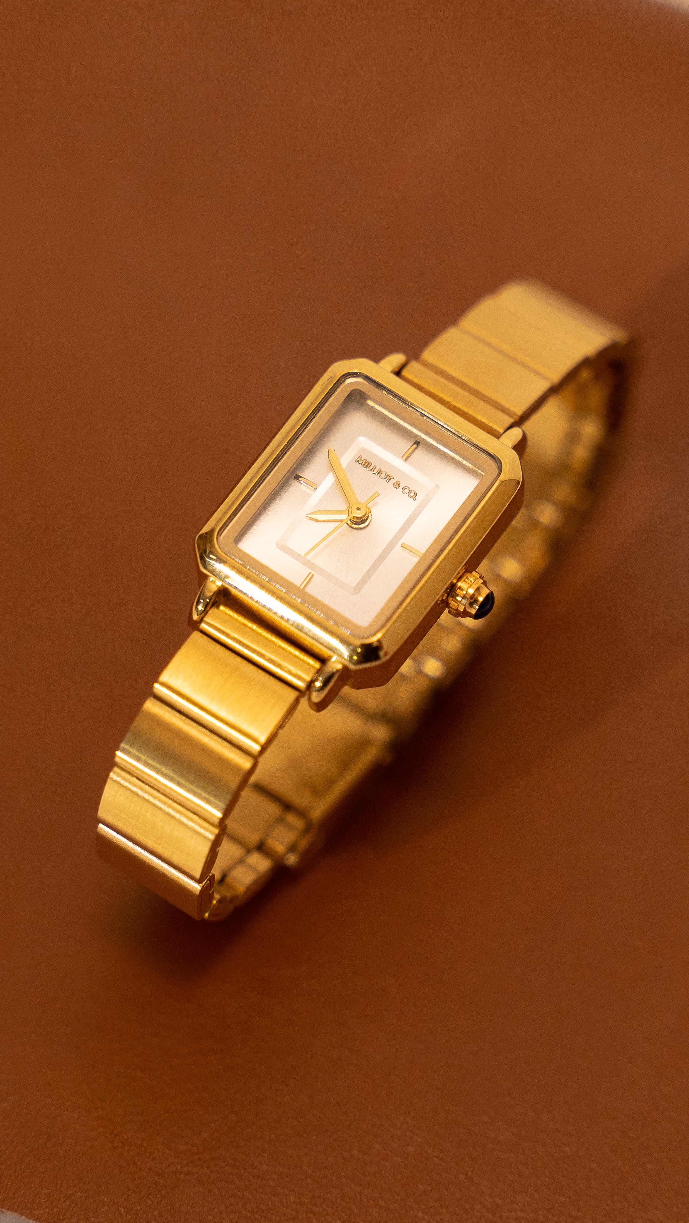 Introducing our chic petite square watch with a refined 22.9mm case. This petite watch is perfect for the smaller wrist or any woman who's in search of a subtle yet eye-catching timepiece.