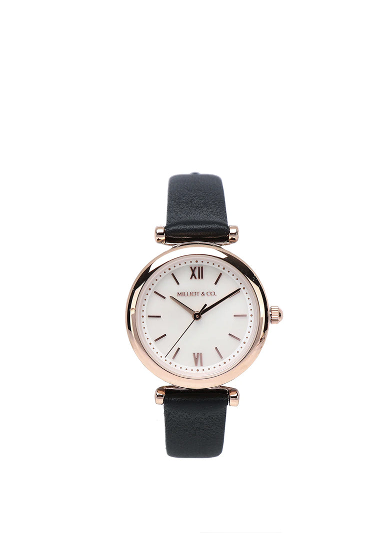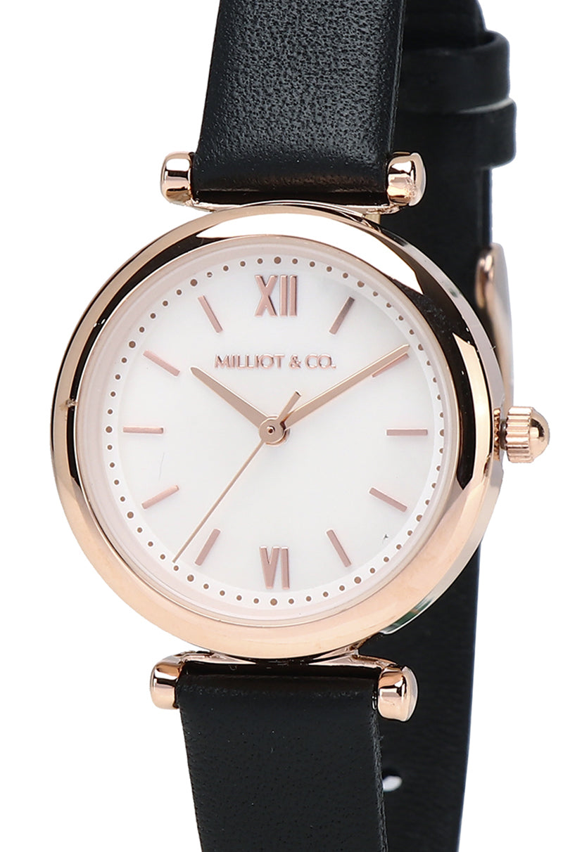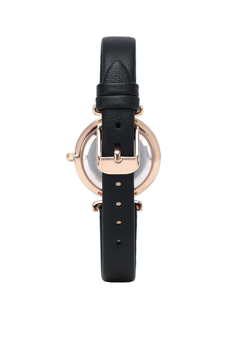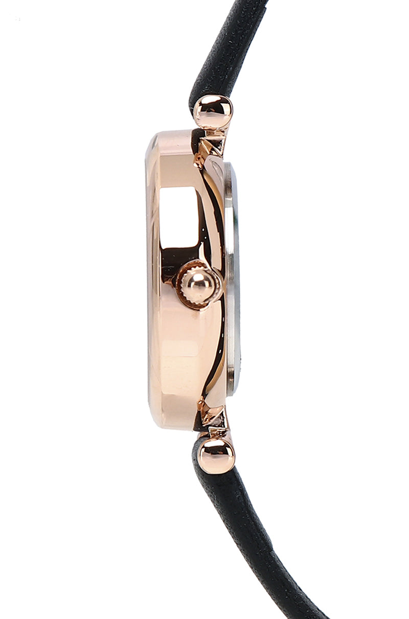 Endora Rose Gold Leather Strap Watch Metal Analog (Black)