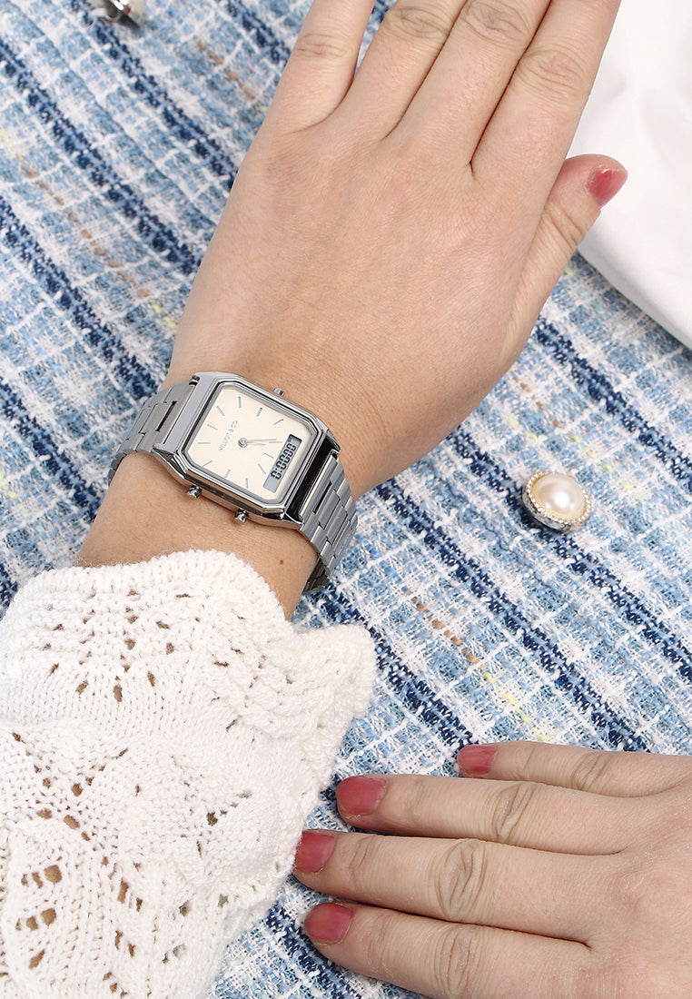 This stylish unisex watch combines classic analog indices with a digital display, perfect for everyday wear. Durable and versatile, it suits any look or activity. With a sleek design and adjustable strap, it complements both men's and women's wardrobes effortlessly.