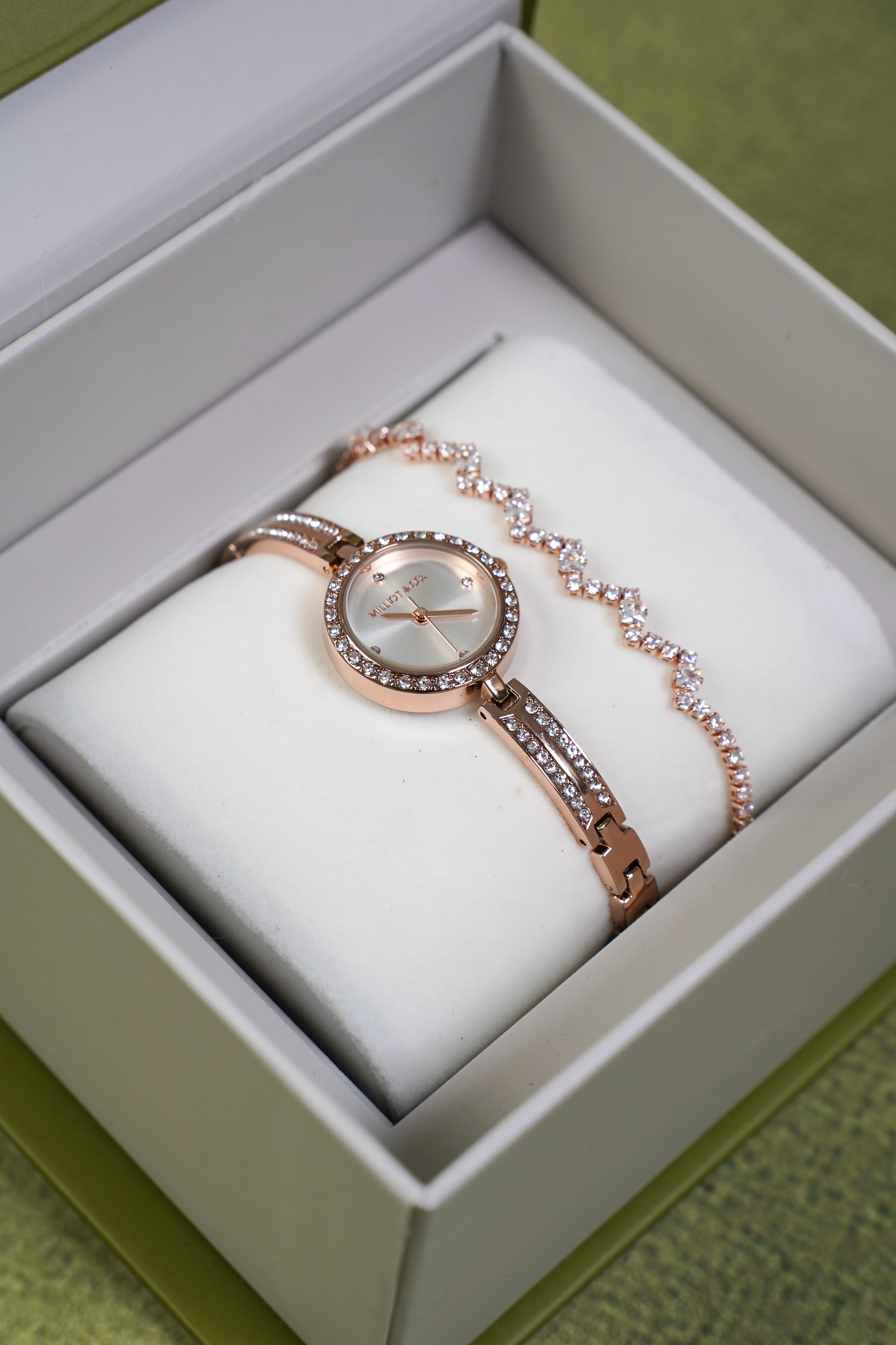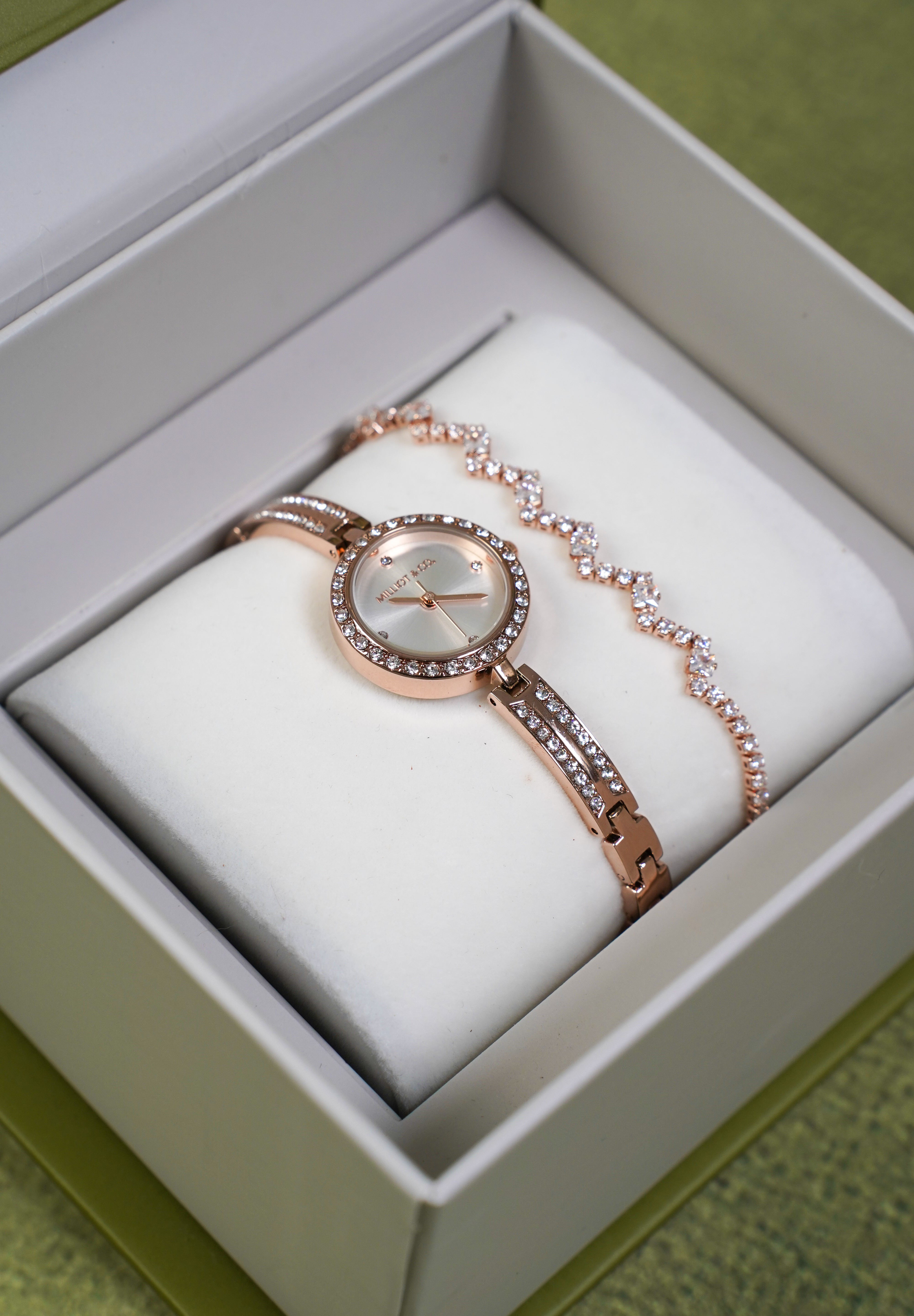 - Gold Analog Watch with Bracelet Set