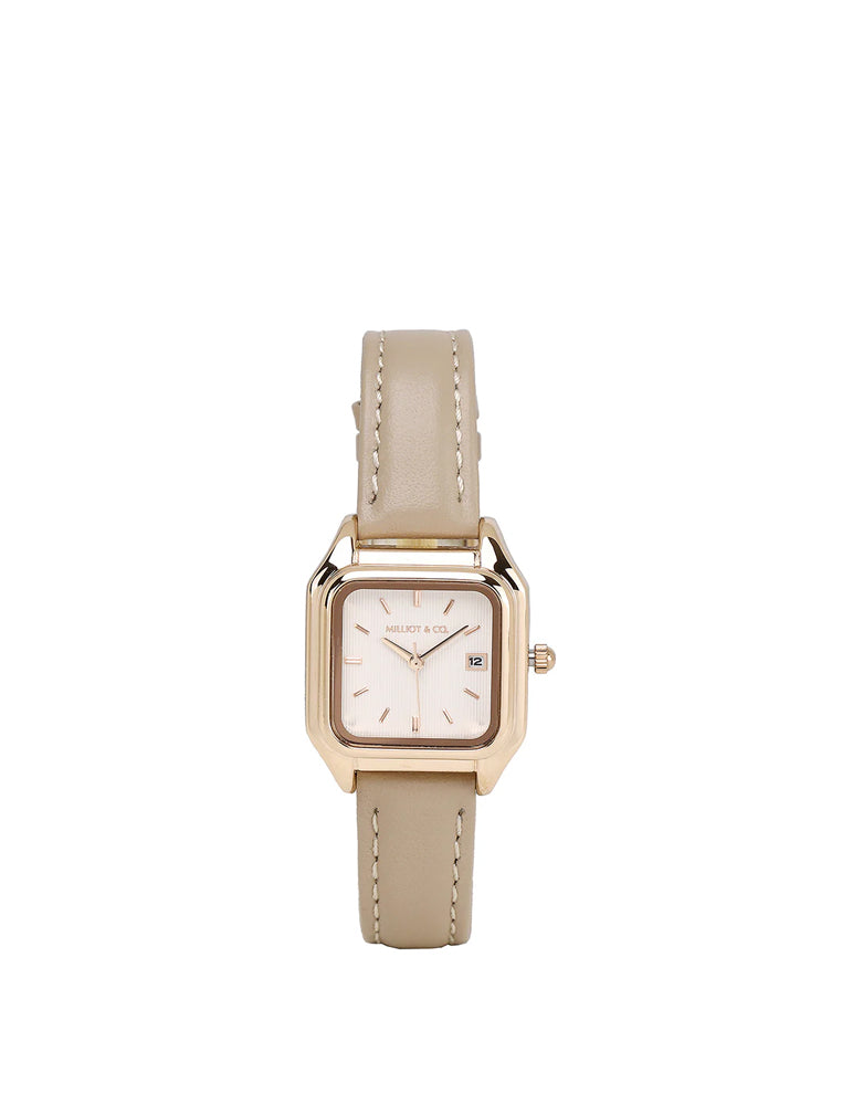 Zara Rose Gold Leather Analogue Watch (Beige)