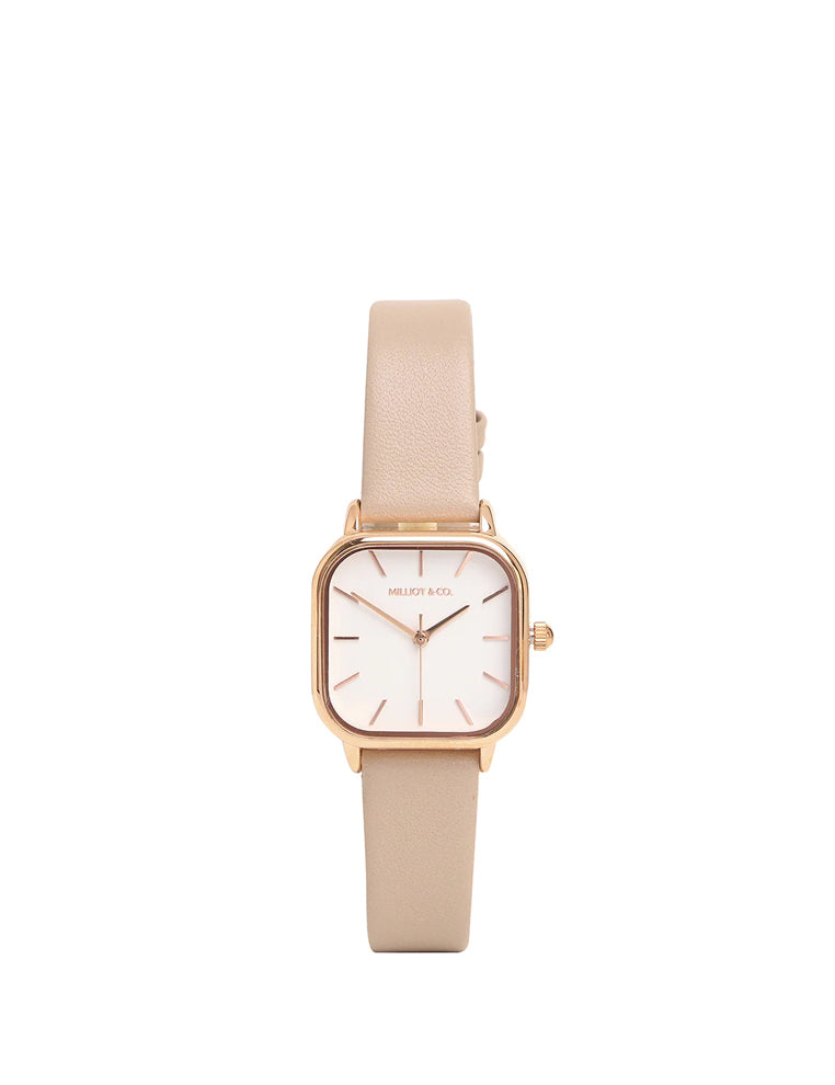 Ainsley Rose Gold Leather Strap Watch (Beige)