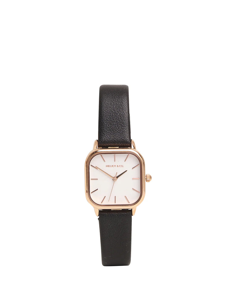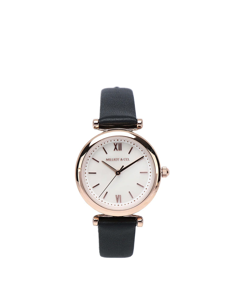 Ainsley Rose Gold Leather Strap Watch (Black)