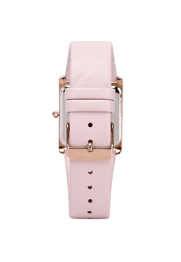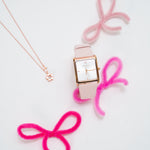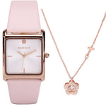 Atharis Rose Gold Leather Watch with Necklace Set (Pink)