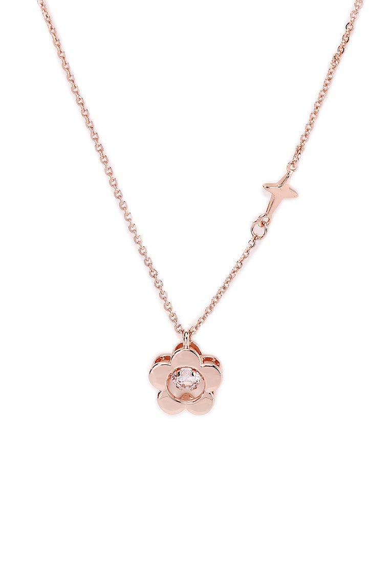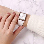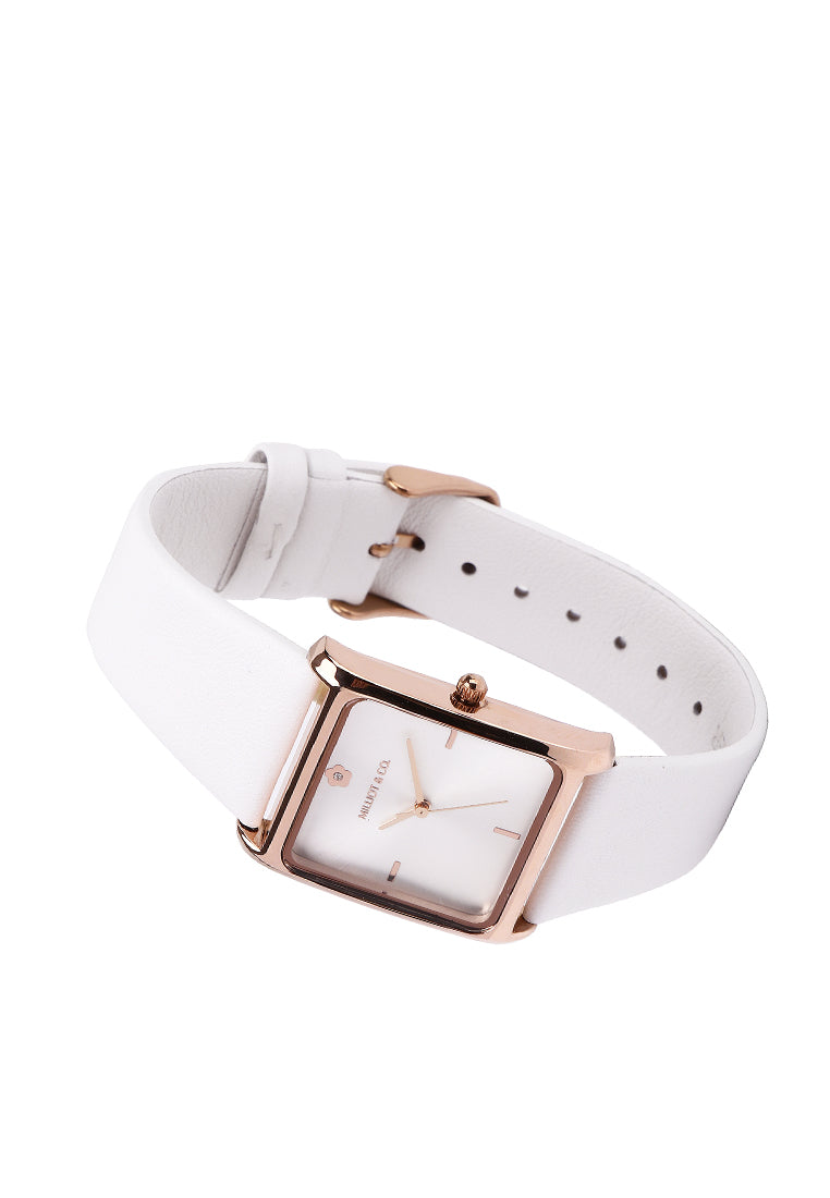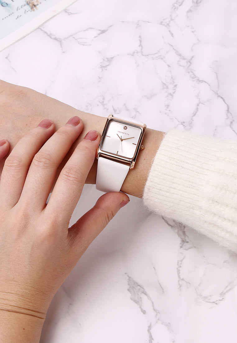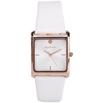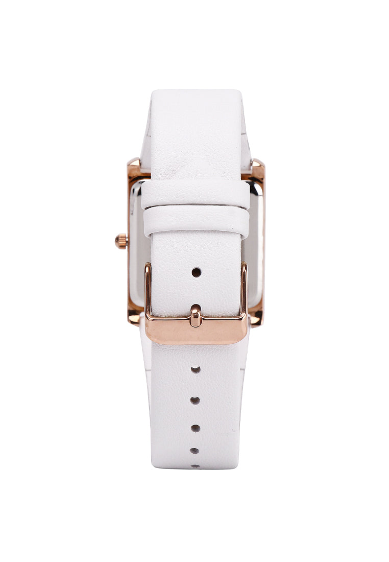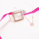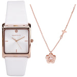 Atharis Rose Gold Leather Watch with Necklace Set (White)