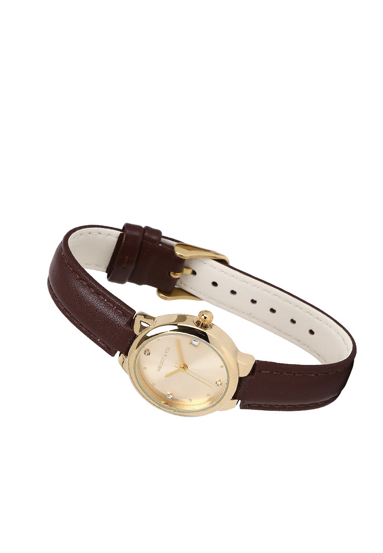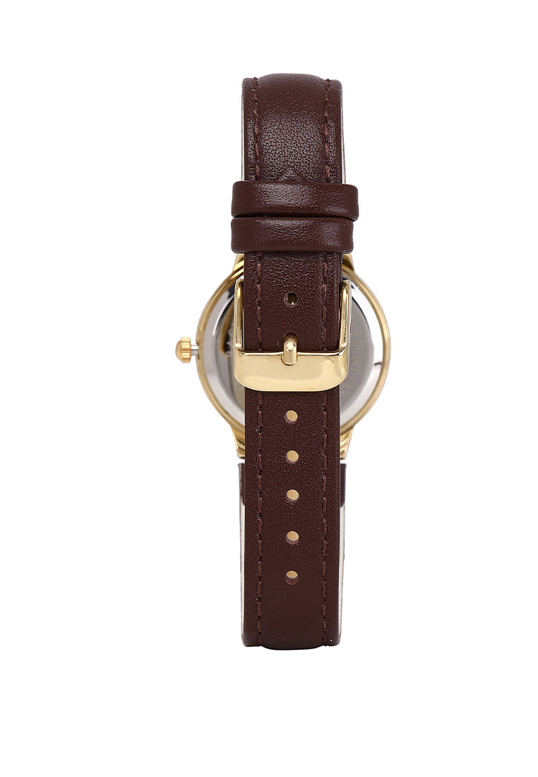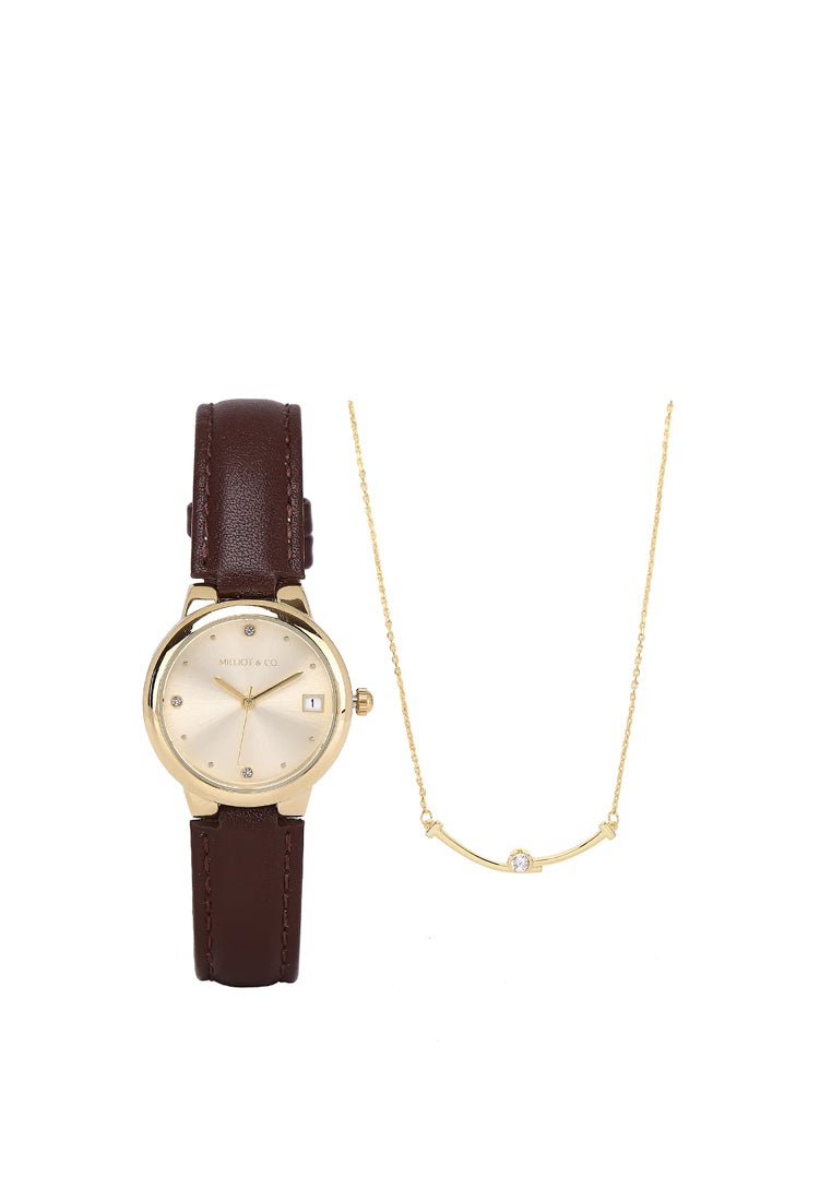 Fae Gold Leather Analog Watches with Necklace Set (Brown)