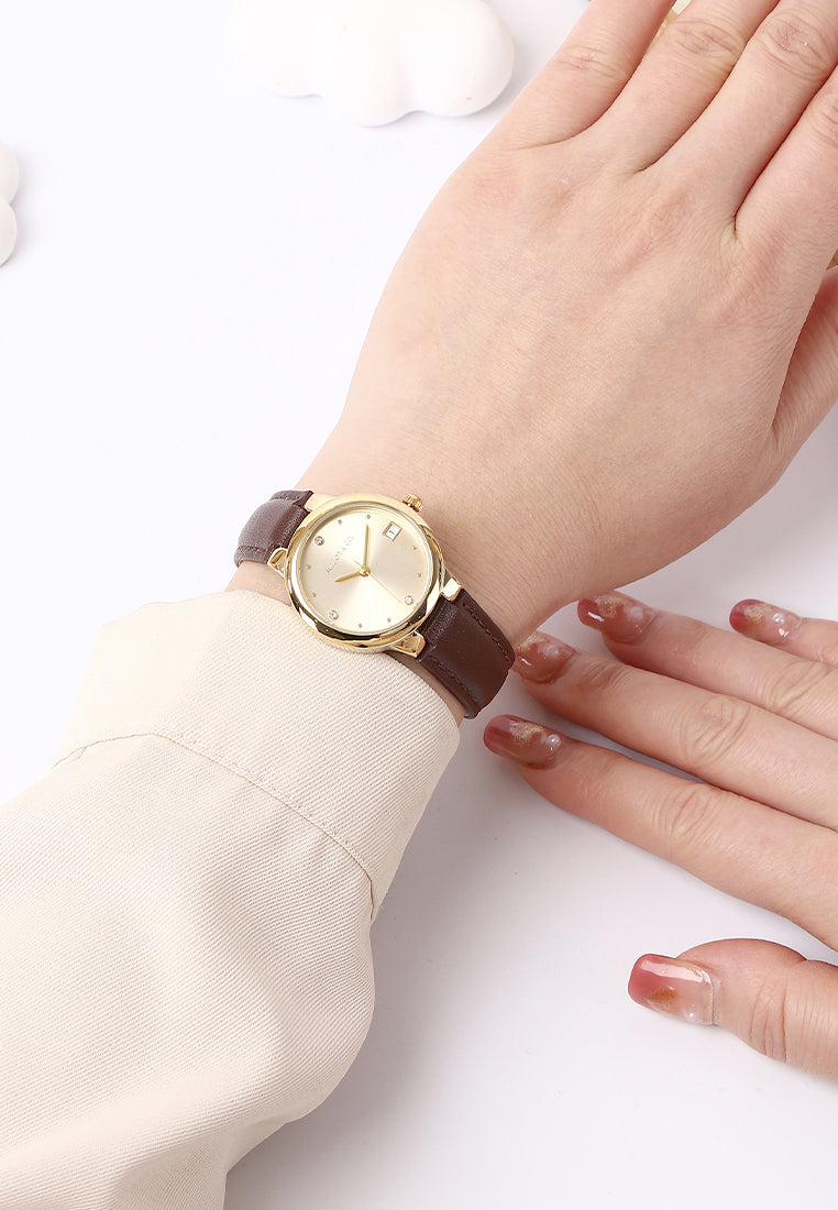 Complete your look with this 30mm round-shaped watch, now available with a matching necklace edition. Featuring a genuine leather strap and a sleek dial with an added date function, this watch offers timeless style and practicality. Paired with an elegant necklace, this set is perfect for elevating any outfit, making it an ideal choice for both everyday wear and special occasions.