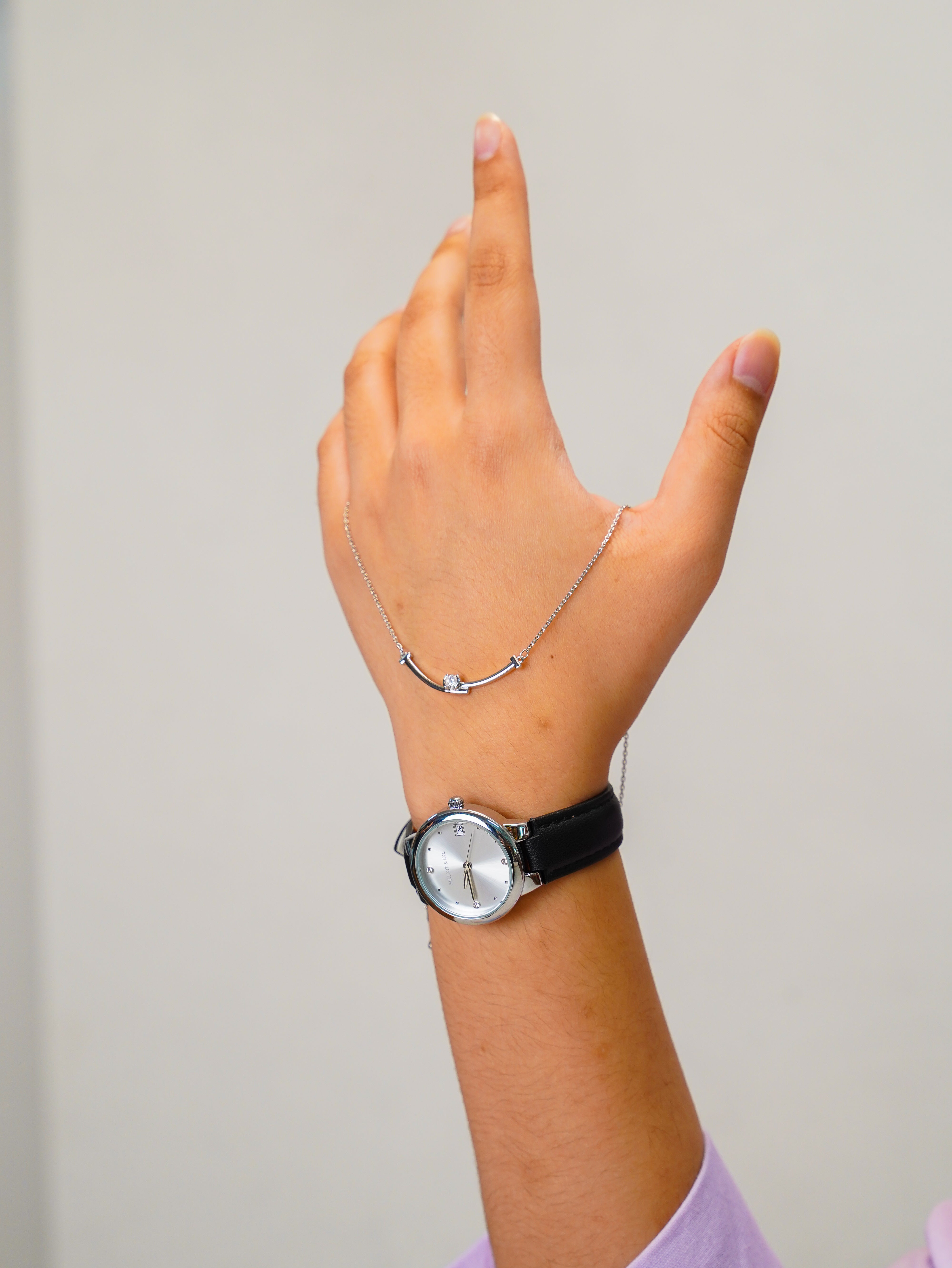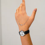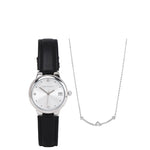 Fae Silver Leather Analog Watches with Necklace Set (Black)