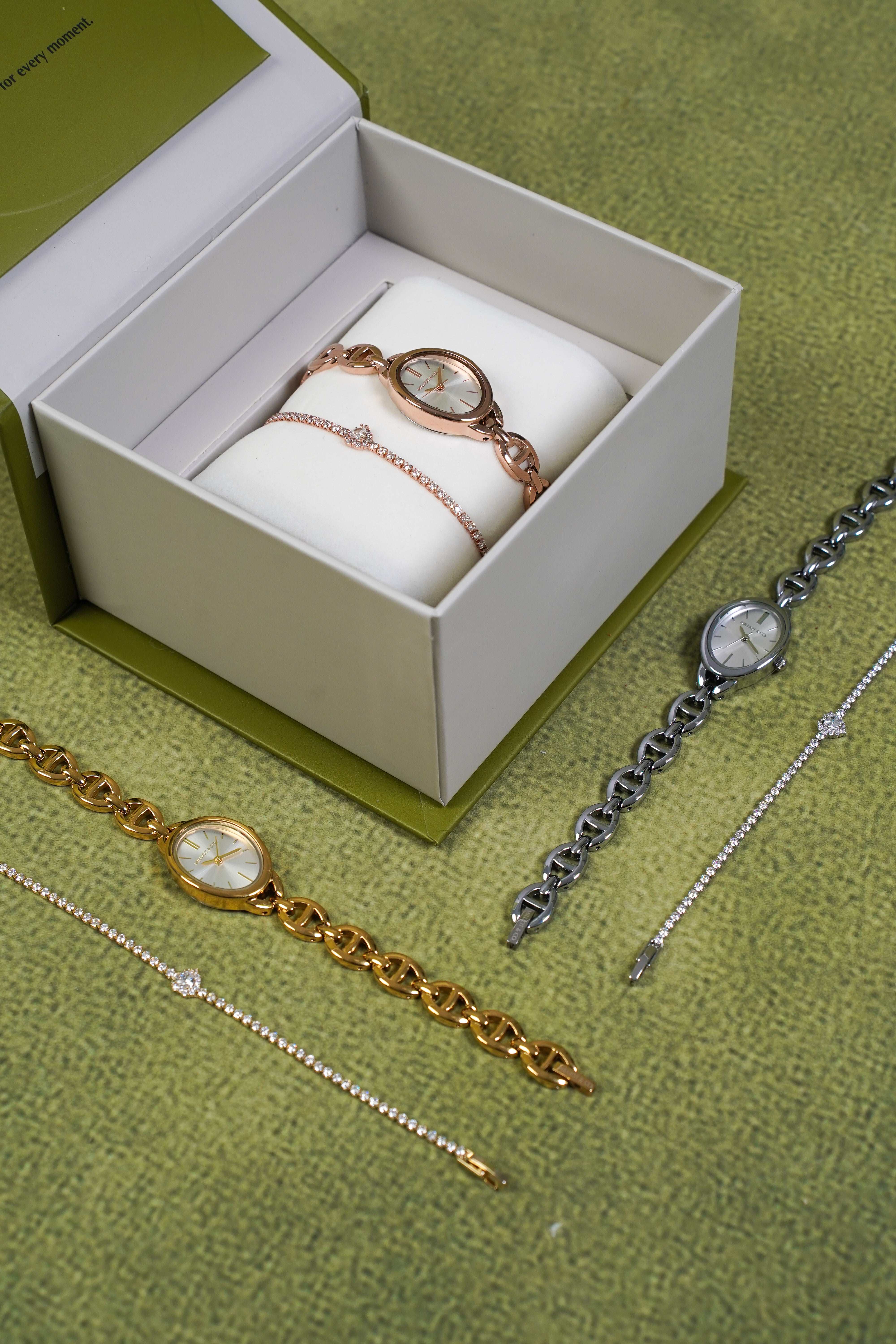 Rebecca Classic Bracelet Analog Watch with Bracelet Set (Silver)