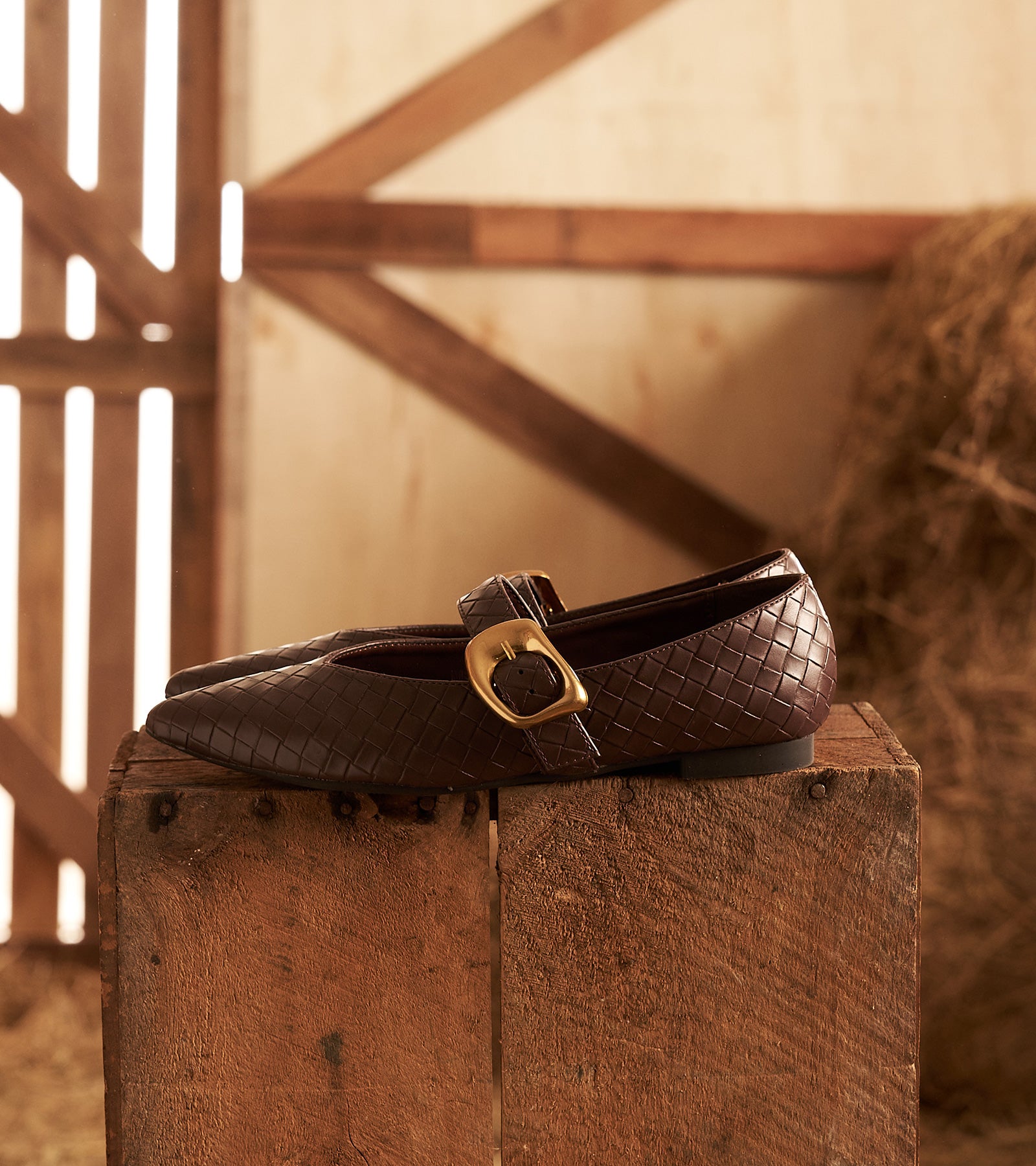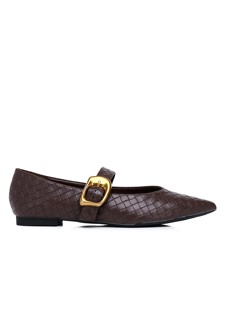 Shanzey Chucky Buckle Strap Ballerina & Flats (Espresso)