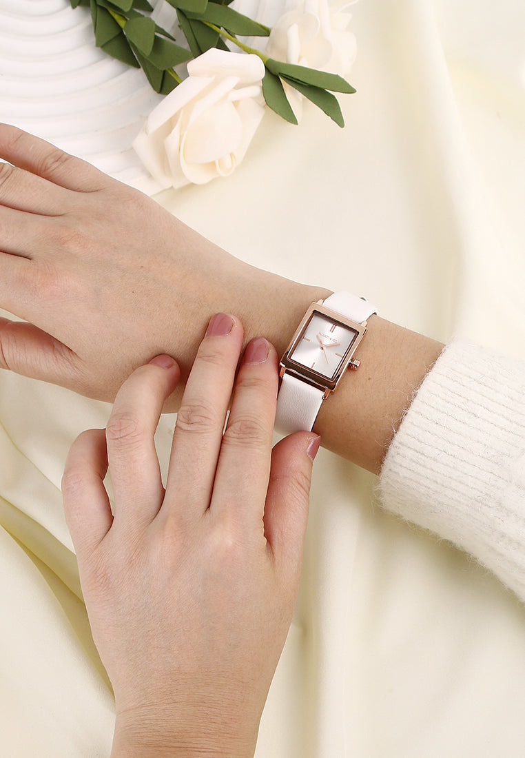 Sima Rose Gold Leather Analog Watch (White)