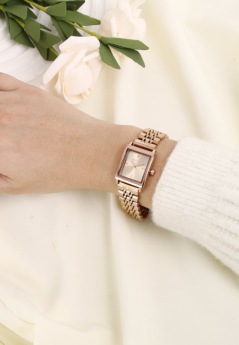 Introducing our Sima Rose Gold in Rectangular Watch. This elegant timepiece boasts a minimalist design with a polished rose gold-tone case, offering a perfect blend of style and sophistication. Ideal for both day and evening wear, it's the ultimate accessory for the fashion-forward individual.