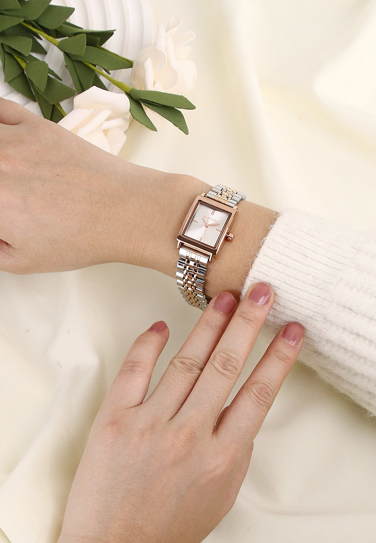 Introducing our Sima Rose Gold in Rectangular Watch. This elegant timepiece boasts a minimalist design with a polished rose gold-tone case, offering a perfect blend of style and sophistication. Ideal for both day and evening wear, it's the ultimate accessory for the fashion-forward individual.