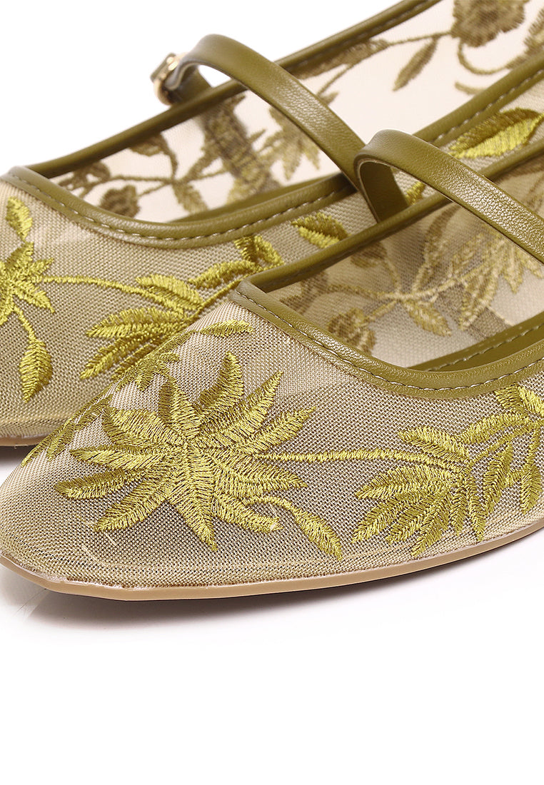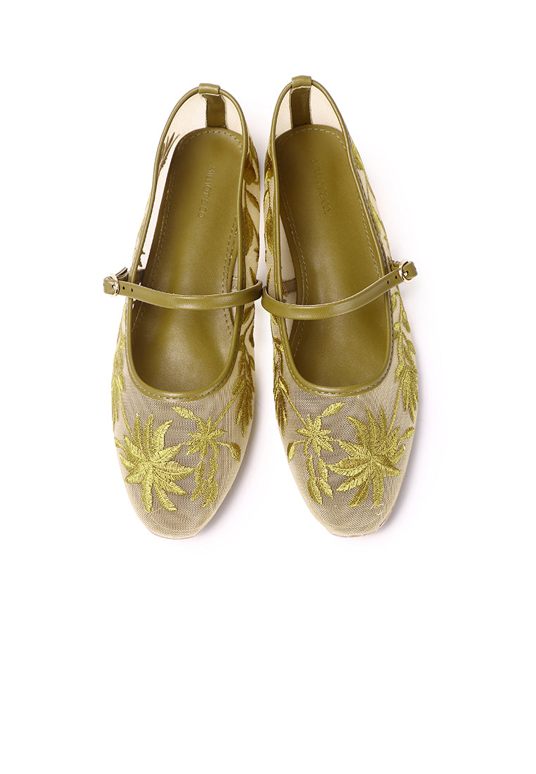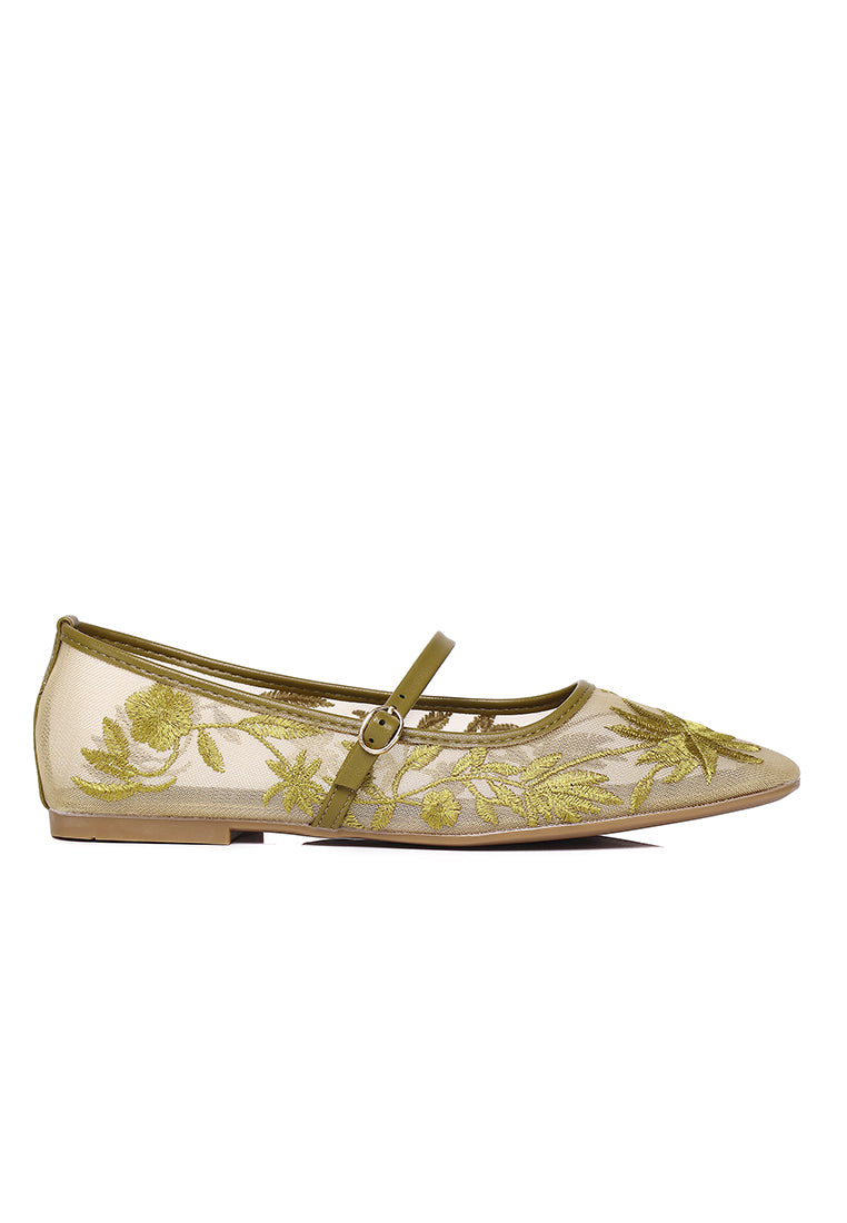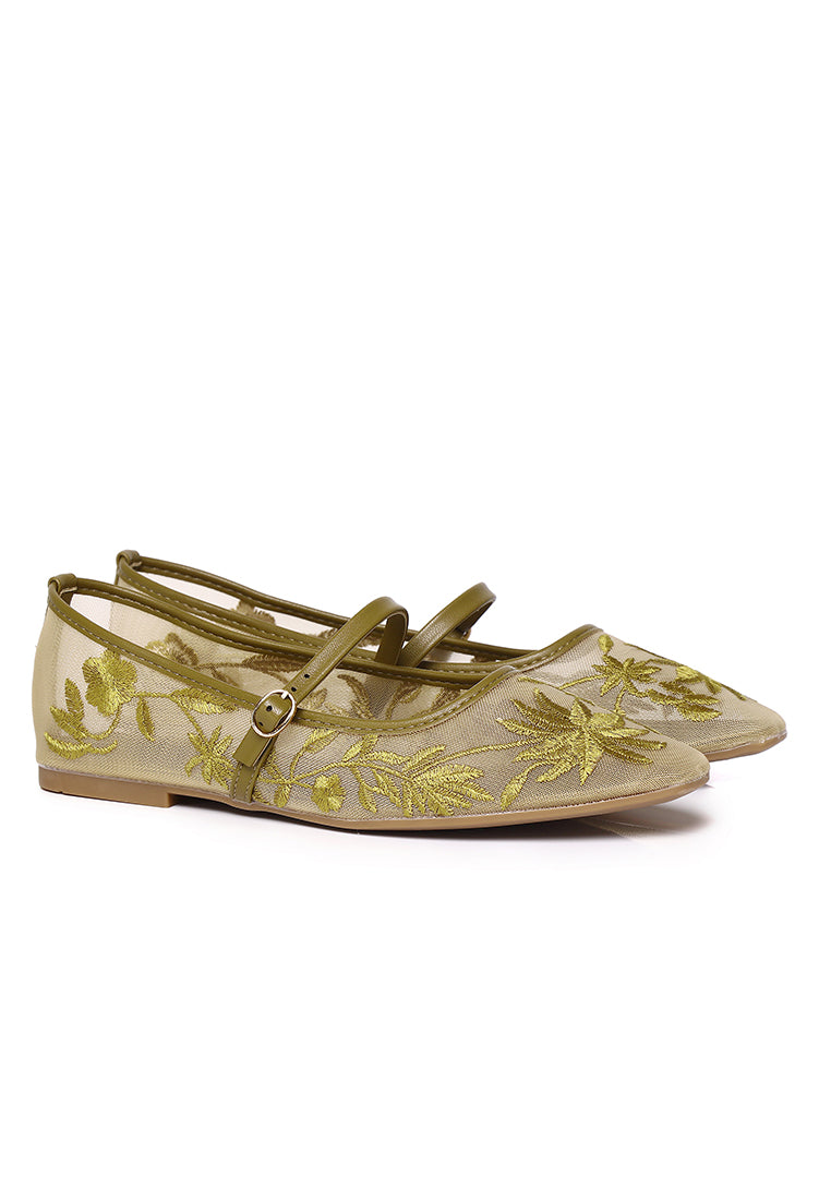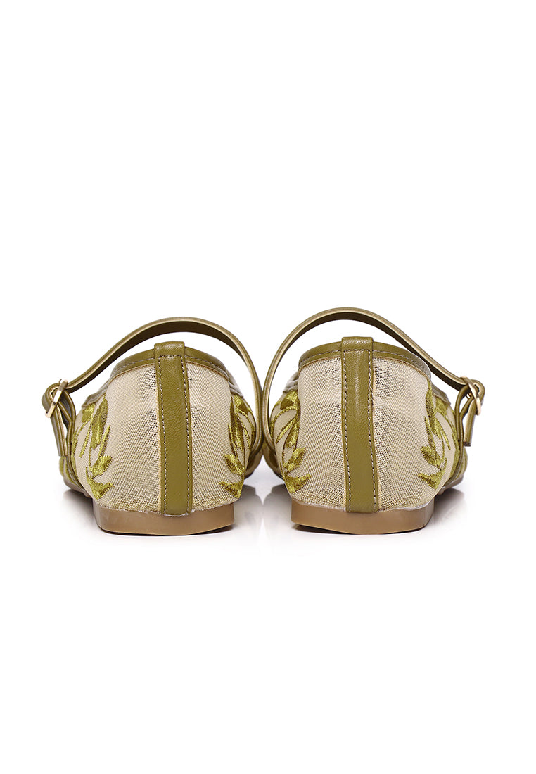 Suki Embroidered Mesh Ballerina (Olive)