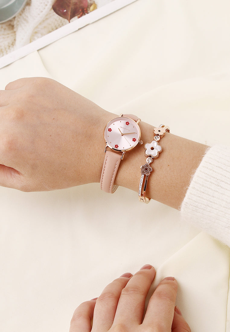 Susy Rose Gold Leather Watch with Bangle Set (Nude)