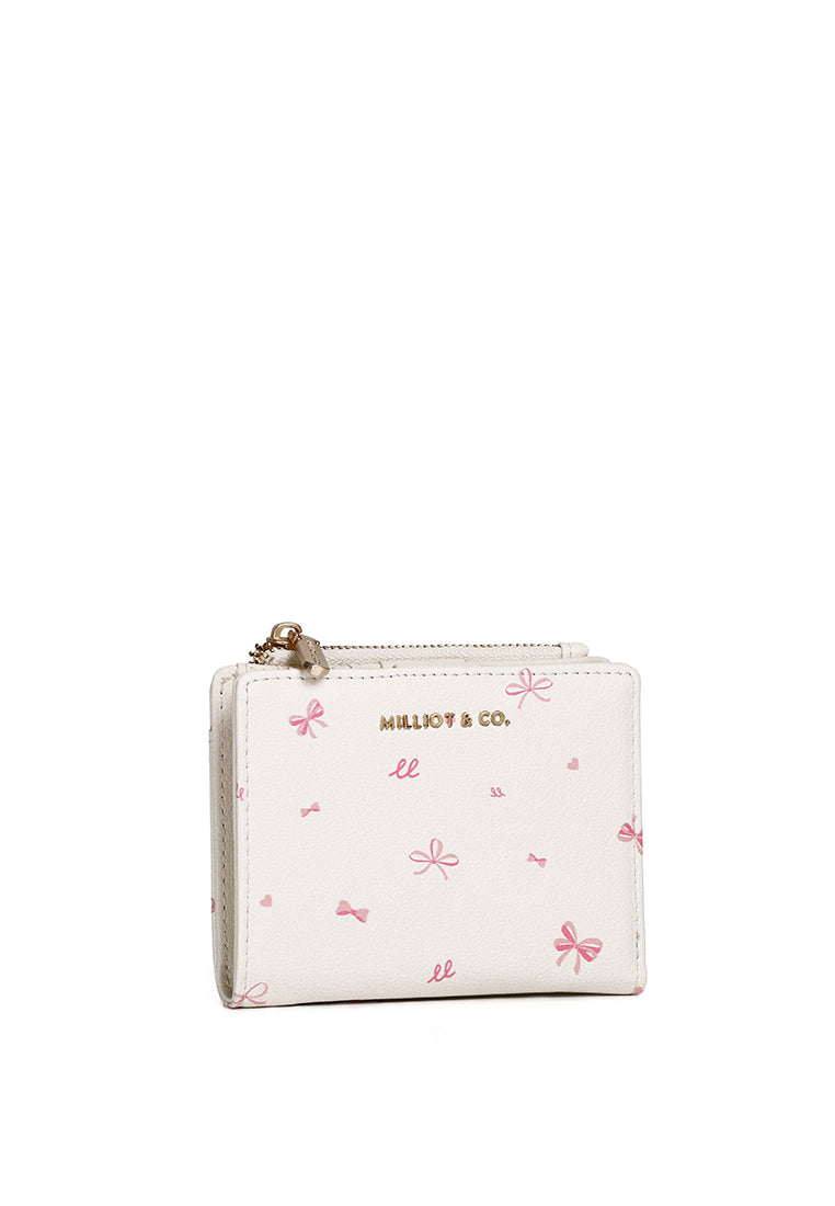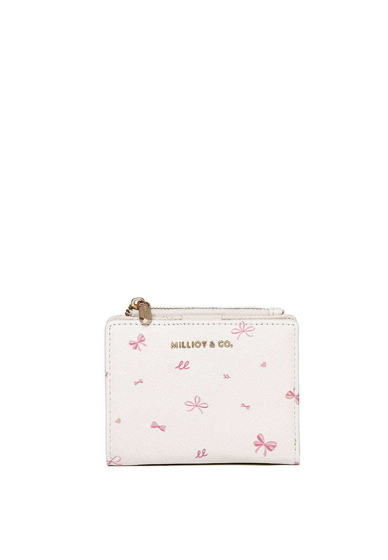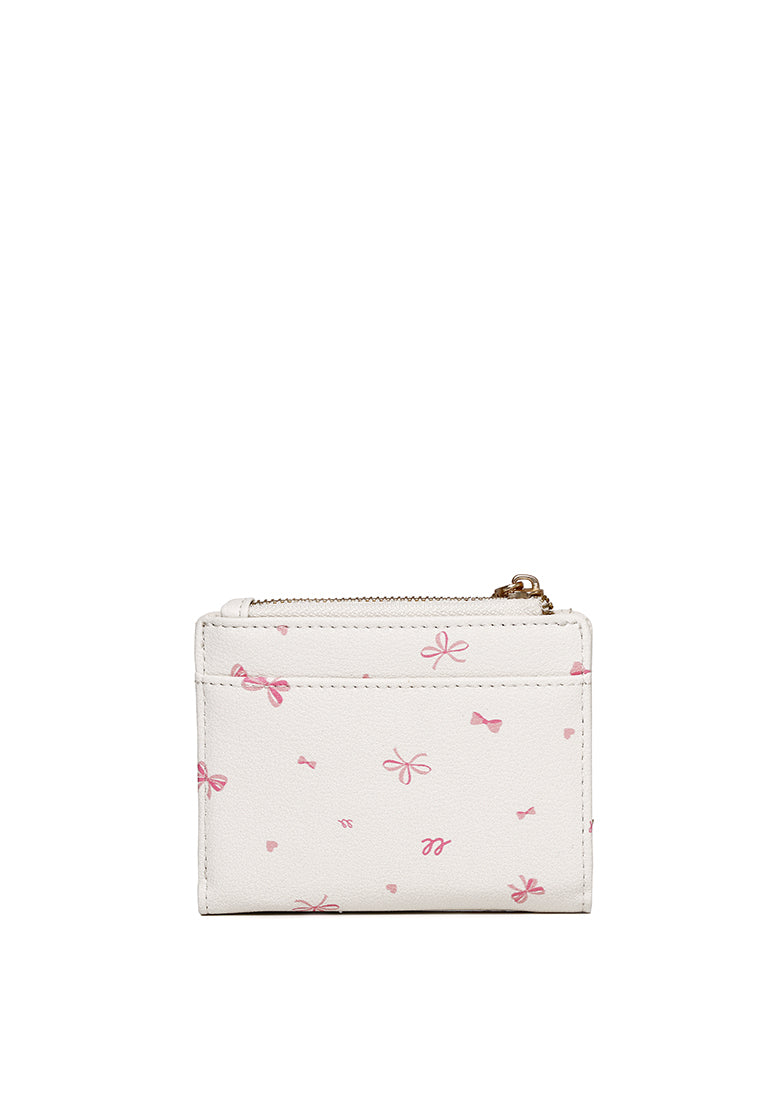 Tie A Ribbon Top Zip Mini Wallet (Beige)