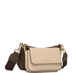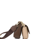 - Two toned crossbody bag with faux leather trims