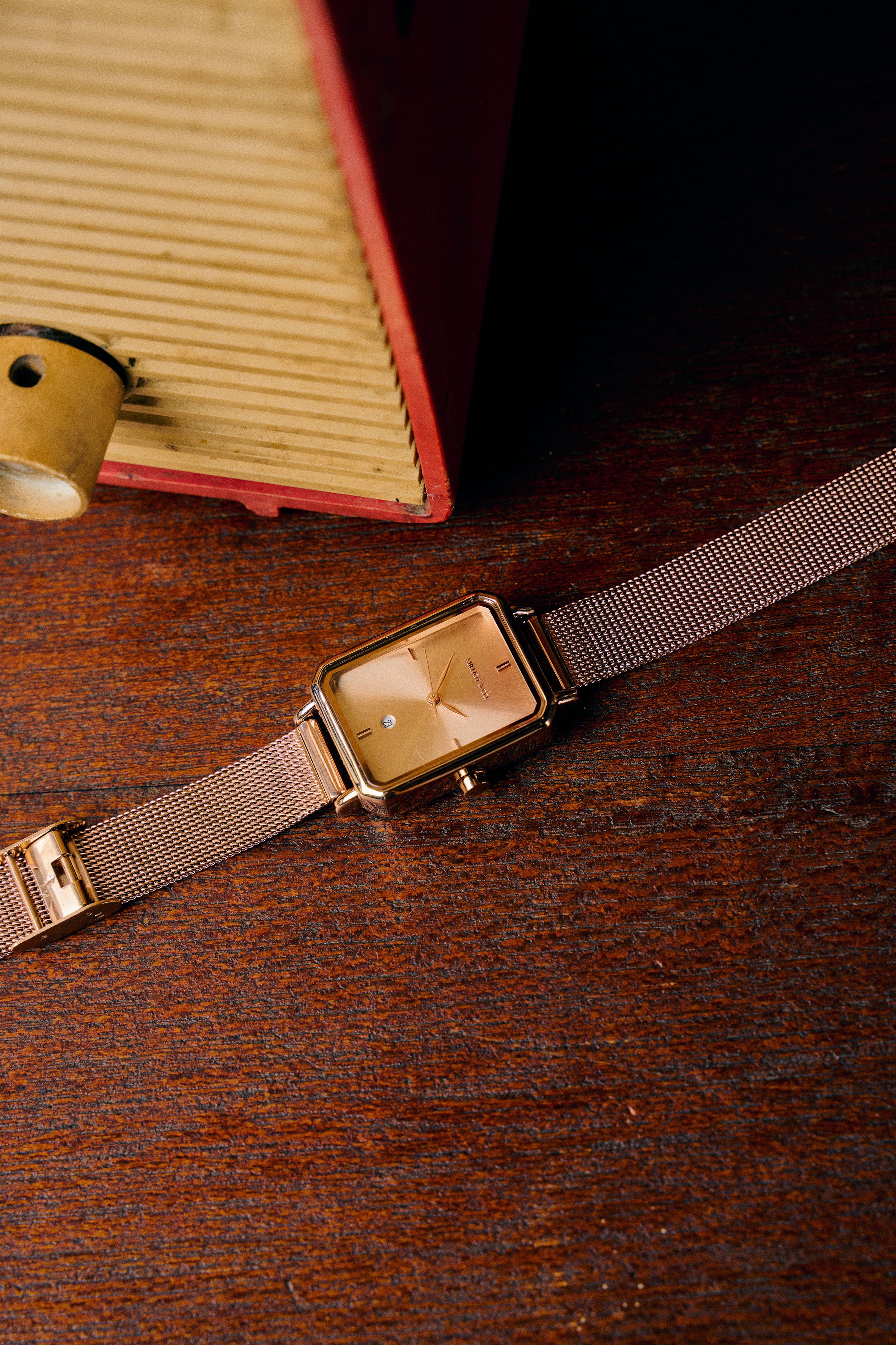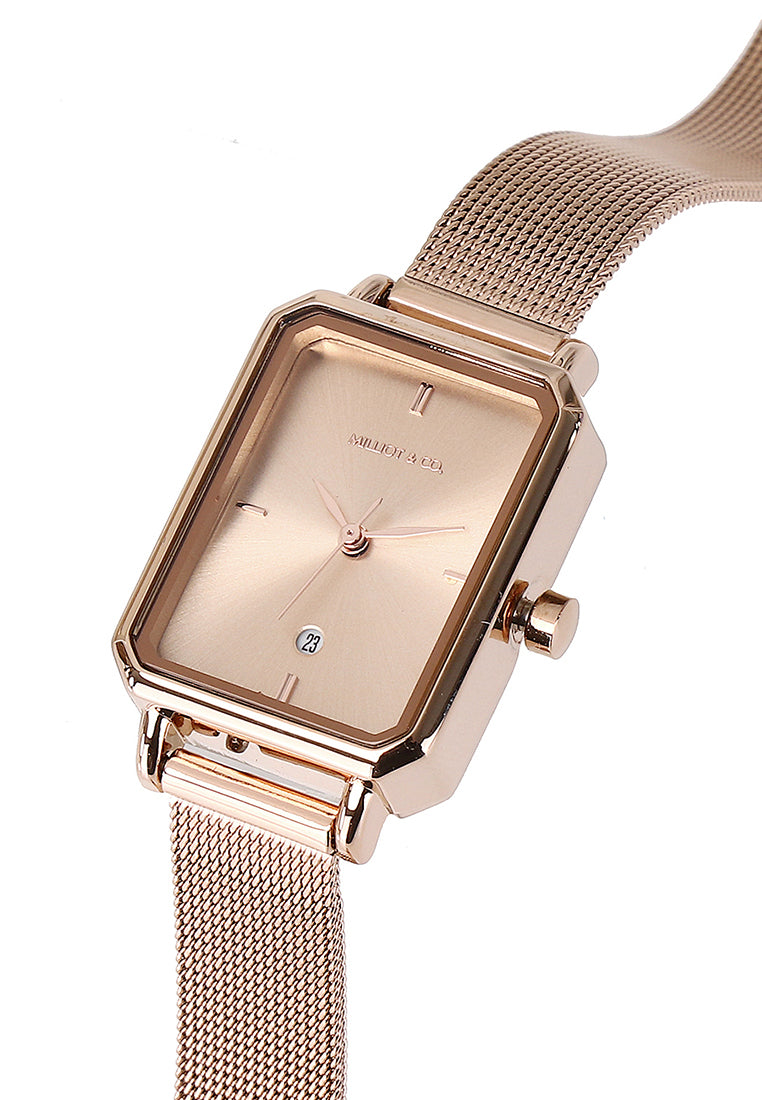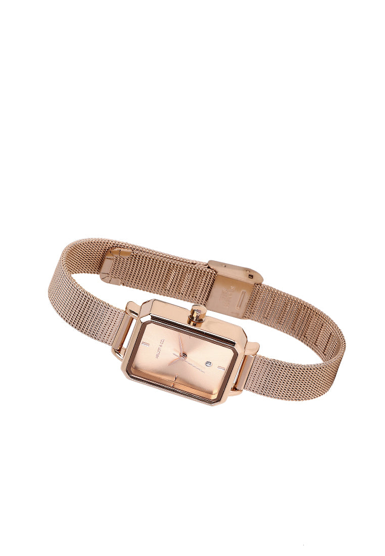 Zara Rose Gold Mesh Analogue Watch (Salmon)